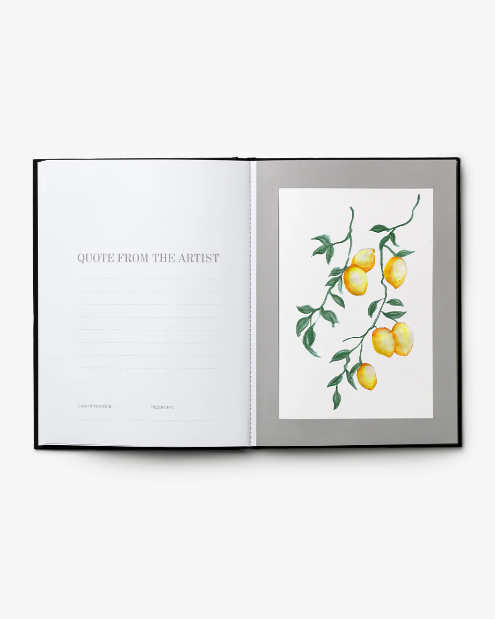 Inside this black Frame Book, you'll discover 19 built-in frames designed to fit a special drawing perfectly. Slide the artwork into the frames, and on the adjacent page, write down notes or messages from the artist, adding a personal touch and capturing the story behind each piece.