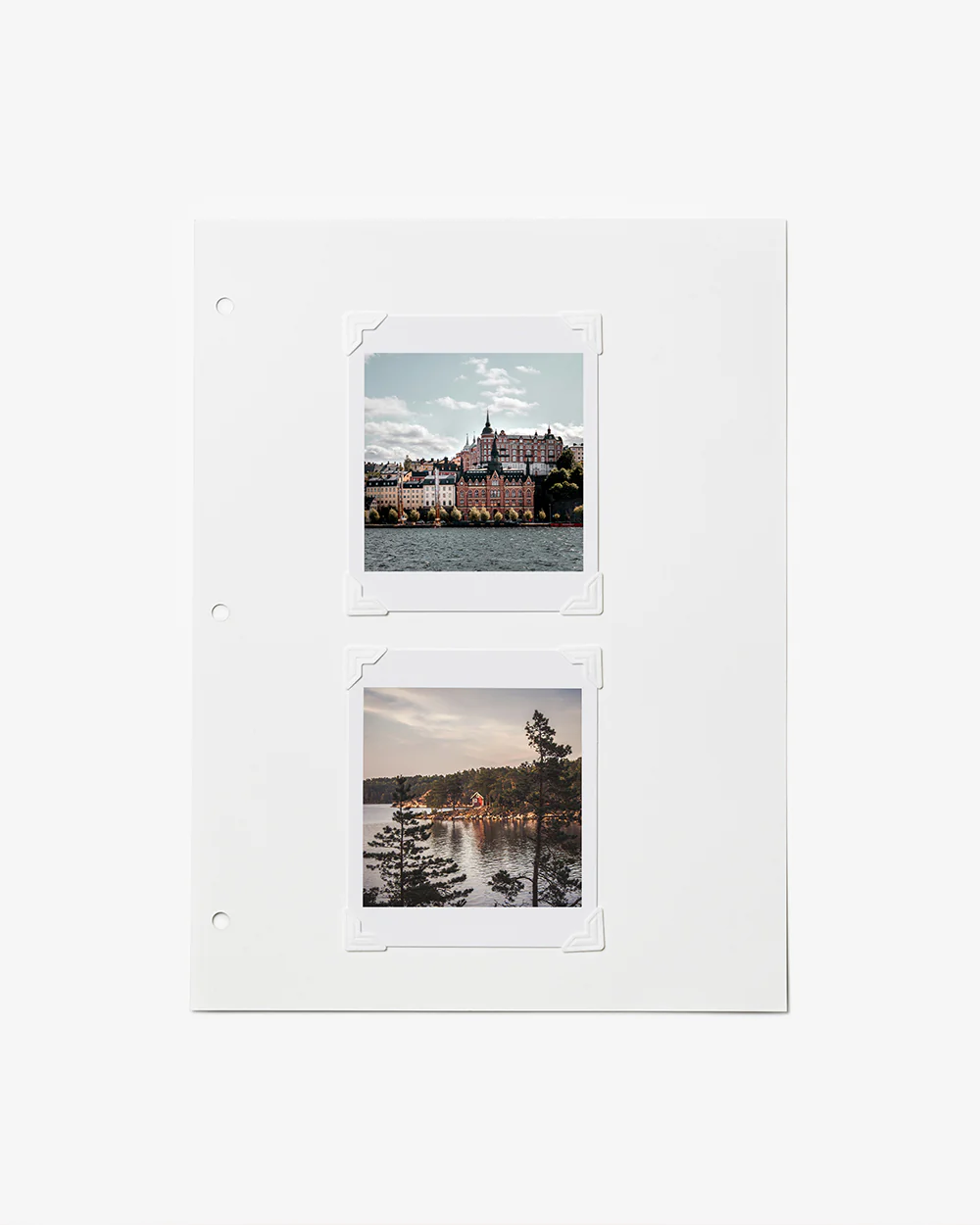 Attach your photos hassle-free with our matt white stick-on photo corners, which are seamlessly placed in each corner of the photo, framing your cherished moments with a delicate touch. The package contains 48 acid-free photo corners.