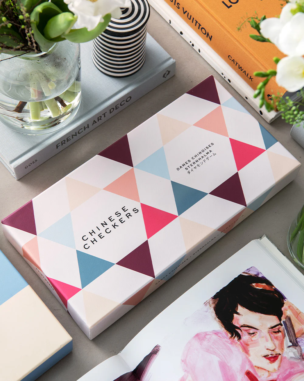 Our Play - Chinese Checkers, features a modern twist on the world-famous game. With a beautiful design, this set looks equally impressive, played or displayed. It includes a foldable cardboard board, colored marbles as playing pieces, and a stylish box that elevates any home.