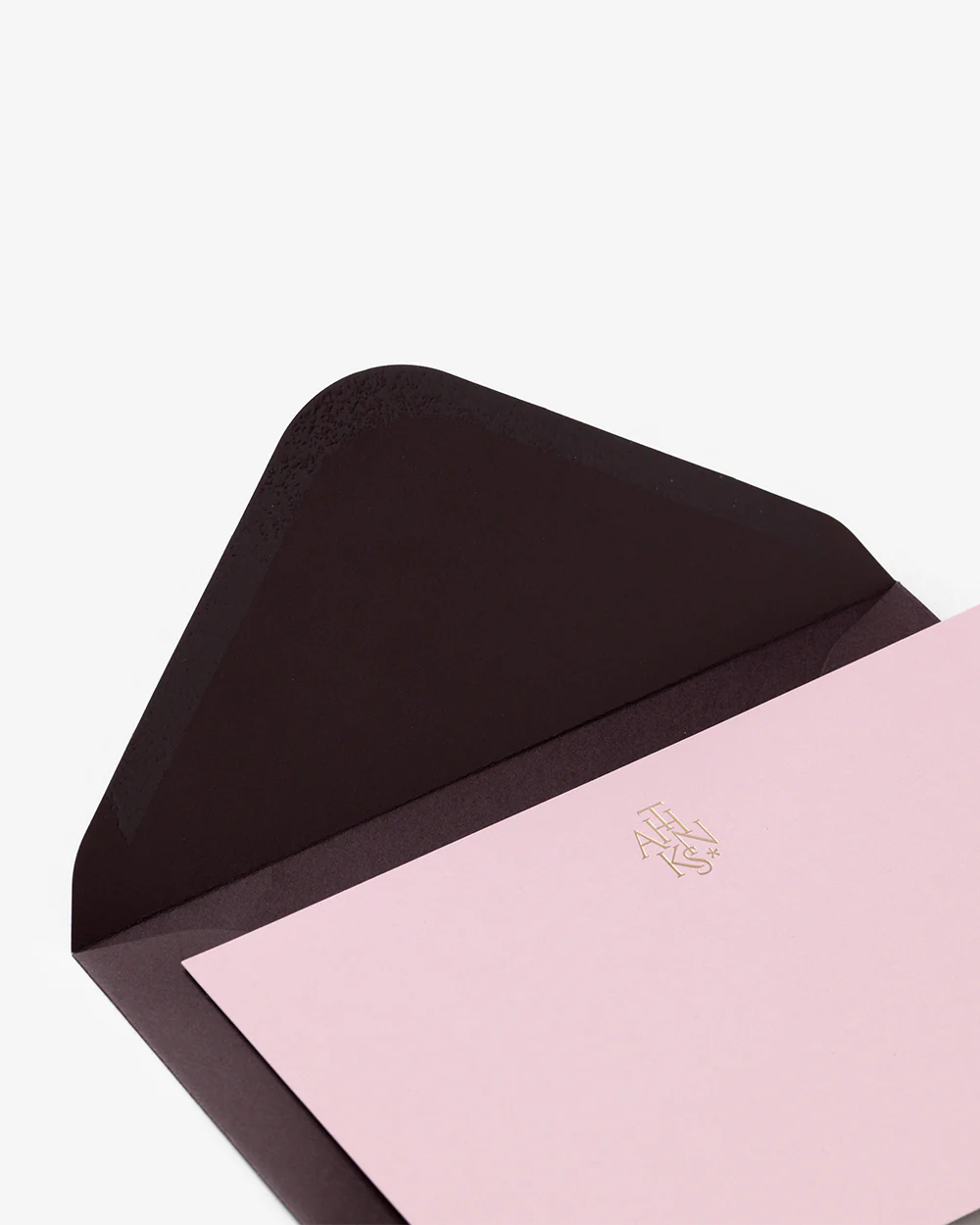 Express your gratitude beautifully with the Thanks card set in soft beige and blush tones. Crafted for meaningful gifting and elegant correspondence, each card and envelope is finished with delicate gold-foil details - because saying thank you never goes out of style.